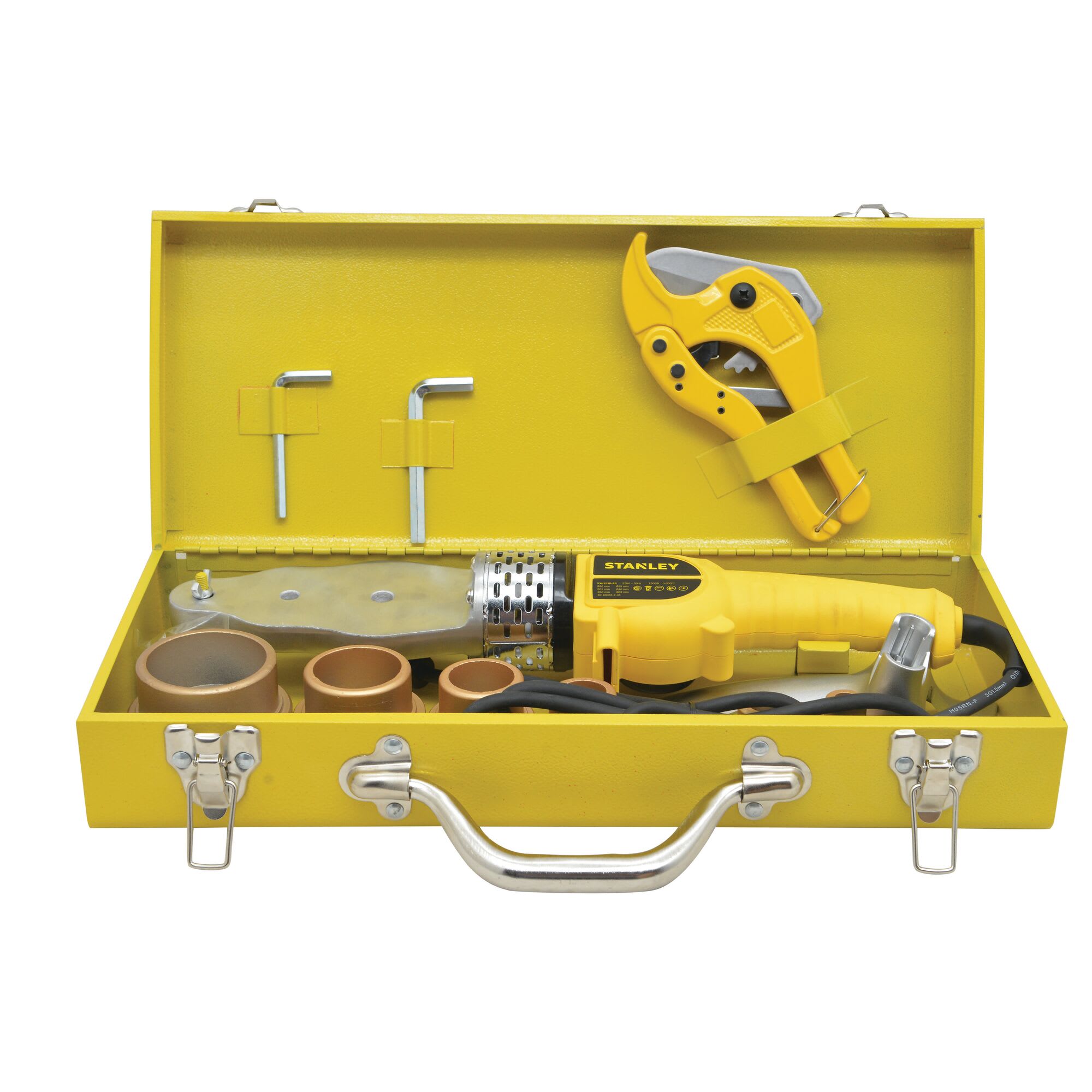 Termofusora STANLEY SXH1530. Soldadura de caños de polipropileno para instalaciones sanitarias. Especificaciones: • Modelo: SXH1530 • Potencia: 1500W