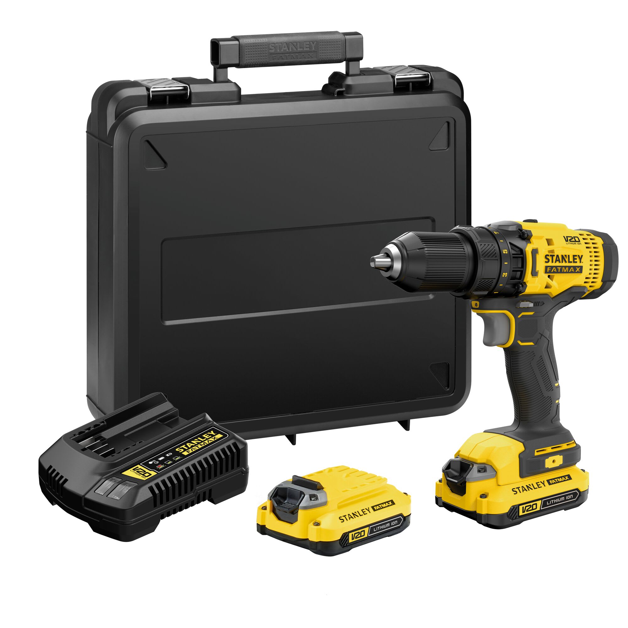 Taladro inalámbrico STANLEY SCD700C2K. Portátil y potente para trabajos en obra y taller. Especificaciones: • Modelo: SCD700C2K • Voltaje: 20V