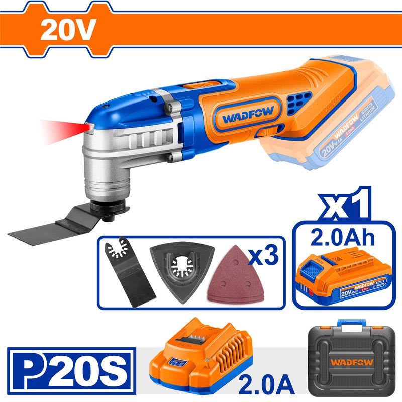 • Voltage: 20V(IRAM Plug) • No-load speed: 5000-20000rpm • Oscillation angle: 3.2°