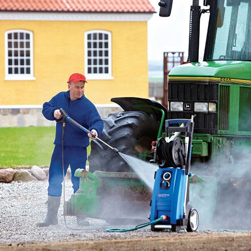 Hidrolavadora compacta para usos rutinarios semi-profesionales en comercios, pequeñas construcciones o alquiler. Combina alto rendimiento con gran ergonomía y durabilidad. Características: • Presión: 120 bar • Impacto de limpieza: 2.2 kg/fuerza • Manguera de 10 metros • Depósito de detergente: 2 litros Especificaciones: • Presión bomba: 120 bar / 12 MPa • Caudal: 520/470 l/h • RPM bomba: 2800 • Potencia: 2300W • Temp. entrada: 60°C • Voltaje: 230V / 50Hz / 10A • Cable: 5 m • Dimensiones: 394×391×955 mm • Peso: 27 kg